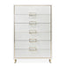 AICO Furniture Palm Gate 6 Drawer Chest in Cloud White N9086070SA-108. The Palm Gate six-drawer chest offers ample storage without compromising on style. Its acrylic body adorned with gold accents and velvet-lined drawers is a testament to its tasteful design.