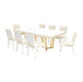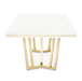 AICO Furniture Palm Gate Rectangular Dining Table in Cloud White N9086000-108. Experience dining at its finest with Palm Gate's extendable table. Its acrylic finish, encircled with a golden band and anchored on a geometric gold base, exudes elegance while offering flexible seating.