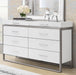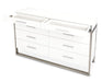 AICO Marquee Dresser in Cloud White KI-MRQE050-108. Complete the look! The Marquee Dresser and Mirror set will change the way you look at bedroom design. With tiered top drawers, a beautiful mix of matte and gloss lacquer finishes, and brushed stainless steel, this pair is exactly what you want in your contemporary living space.