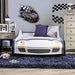 Hero on patrol! Your child will race off into dreamland adventures with this turbo squad car bed design. It's flashy and sturdy, complete with metal supports, working lights and a shiny finish.