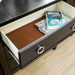 Fall asleep better than ever on this handsomely crafted bedroom set. The rich, wire-brushed black finish effortlessly fits into any sleeping environment while paired with minimalistic designs. Its wood paneled headboard and footboard makes subtle statements and create a luxurious appeal. Case goods showcase small ring drawer pulls for charismatic charm as top drawers come lined with felt for your more delicate items.