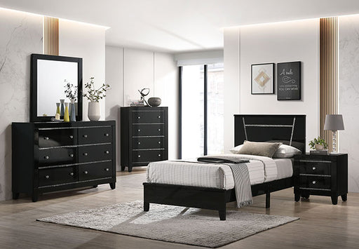 FOA WestMAGDEBURG Cal.King Bed, Black, 88 1/4"L X 74 7/8"W X 42 3/8"H, 102.5lbs. For a minimalistic space, this ensemble sets the perfect tone. With a slee...