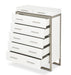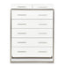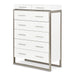 AICO Marquee Chest in Cloud White KI-MRQE070-108. The best of modern style. With the Marquee Chest, you can easily make the most of your space. Full extension drawers make organizing a breeze while you enjoy the quality velvet lining and self-closing glides. Topped with super matte glass, this piece is certain to elevate your home and deliver the luxury look you deserve.