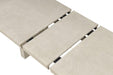 Table, Chairs and Bench, Modern Farmhouse, Rubberwood, Engineered Wood, Foam, Fabric, Mindi Veneer, Natural, Table Extendable w/ Leaf, Plinth Base, Felt-Lined Top Drawer, Black Iron Handle, Metal Side Glide, Soft-Closing Door in Server