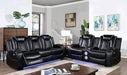 Take your living space to another level with this cozy and futuristic ensemble. Plush backs and arms are adorned with diamond stitching on smooth leatherette. Underneath each arm is extra storage. The main draw here is the LED lights on bottom edge of this loveseat--lighting that lifts the mood from unexpected to exotic. It is equipped with a center console with storage, cup holders, and Bluetooth audio speakers, which if used smartly, can definitely change the evening's mood.
