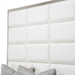Aico State St King Upholstered Panel Bed in Glossy White 9016000EKP-116. State St. Addresses the style conscious contemporary customer looking for sleek, hip design. Elements of minimalist modern combine with glass, stainless steel and acrylic providing a unique style. Sensibly scaled for today's modern spaces, the collection offers a fresh, clean approach to contemporary lifestyle.
