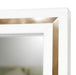 AICO Furniture Palm Gate Wall Mirror in Cloud White N9086260-108. The Palm Gate wall mirror is designed to complement the elegance of any room. Framed in a delicate Japan gold trim against a Cloud White backdrop, this mirror exemplifies minimalist chic with a touch of opulence. Its expansive reflective surface not only enhances the light and space within any room but also serves as a graceful accent piece. Perfectly pairing with the sideboard, this mirror adds a cohesive and refined look to your decor, making any space feel more open and inviting.